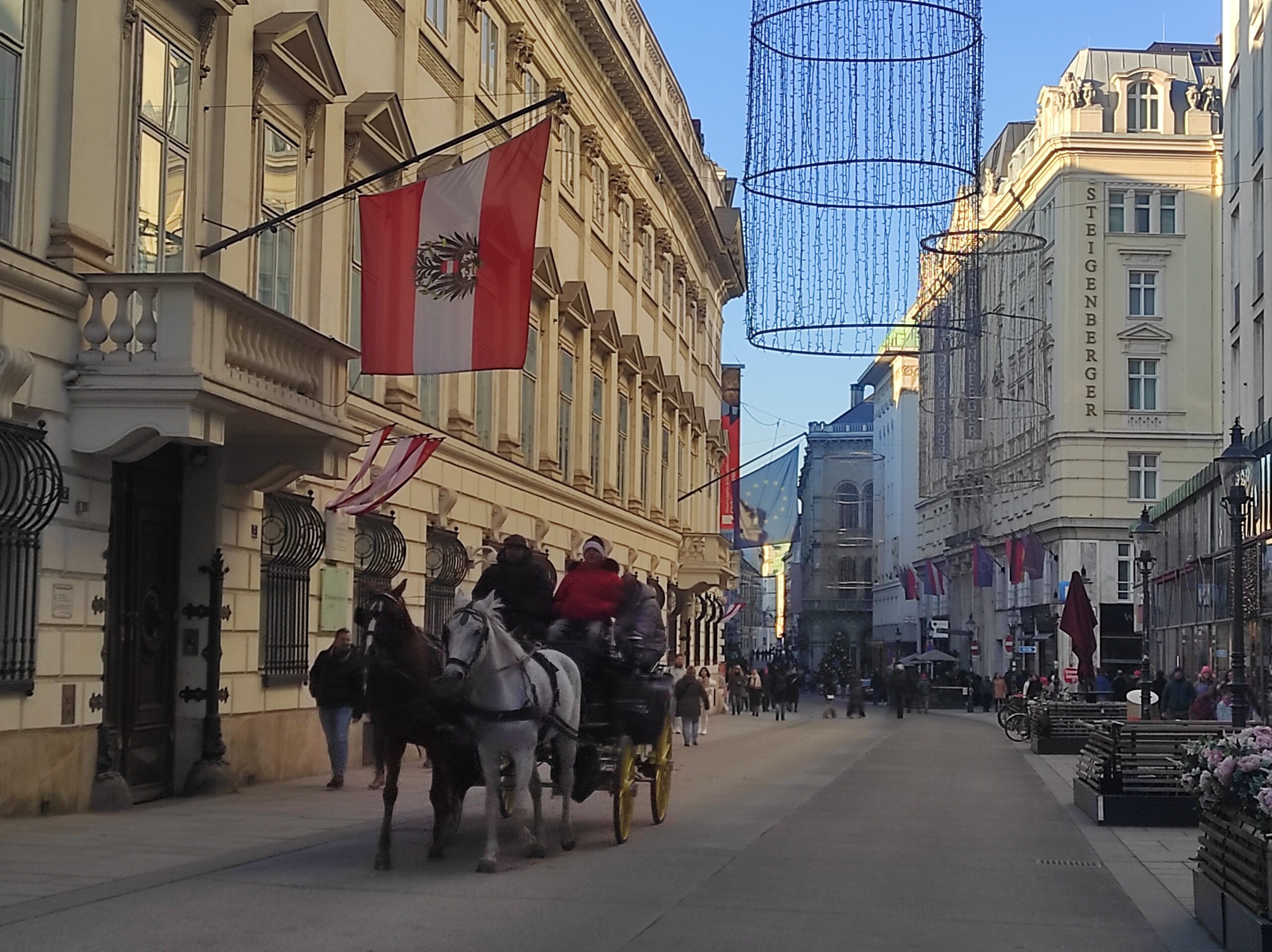 Sõidame trammiga mööda linna uhkemat tänavat Ringstrasse, mille äärde 19.sajandi ärimehed ehitasid oma villad, keskuse suunas. Vaatame sisse maailma juhtiva kõrgekvaliteedilise kristalli tootja Swarowski esinduskauplusesse. Brändi kollektsioonides on üle 100 000 erinevat tüüpi kive mitmesugustes vormides.